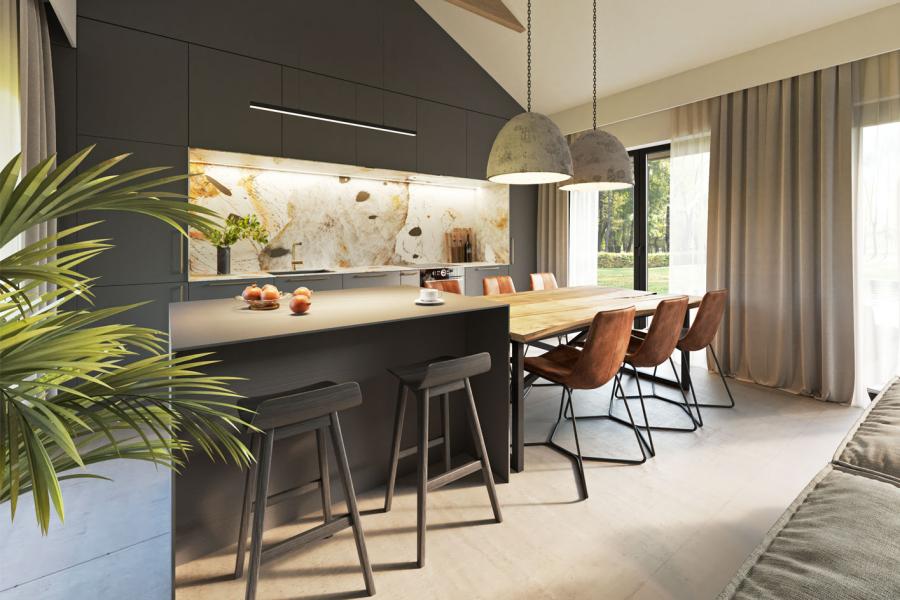 - Nowoczesna kuchnia z wyspą i spiżarnią – maksimum funkcjonalności w codziennym użytkowaniu.