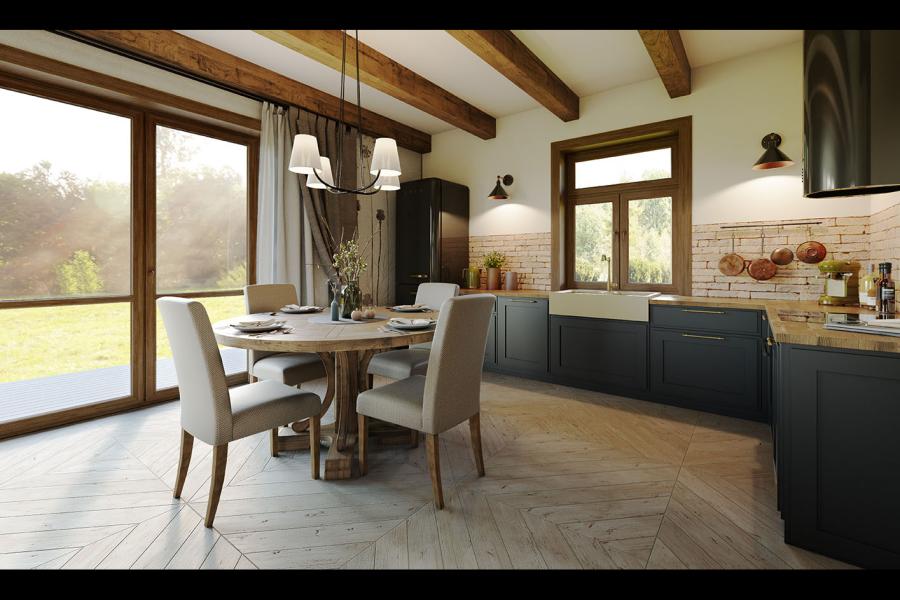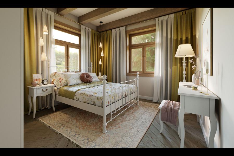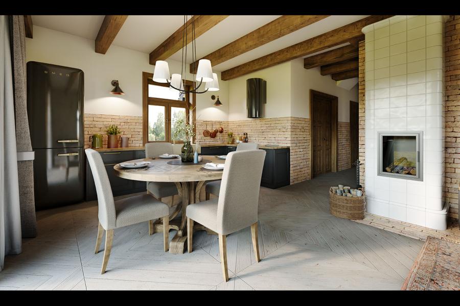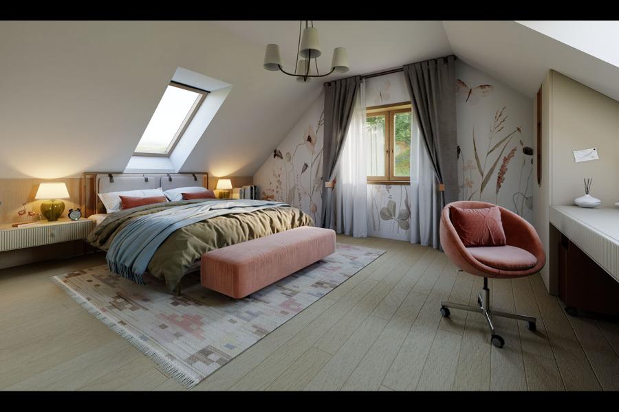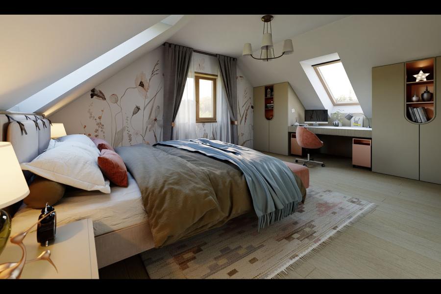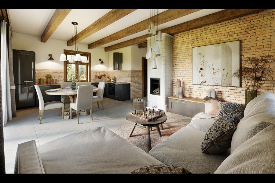 Surażkowo 2 to projekt niedużego domu z użytkowym poddaszem nawiązującego stylem do tradycyjnych podlaskich domów. Posiada na parterze dwie sypialnie, otwartą część dzienną, łazienkę oraz pomieszczenie techniczne. Na poddaszu zlokalizowano dodatkowe dwie sypialnie i łazienkę. Wszystkie wewnętrzne ściany parteru i poddasza są działowe co pozwala na wiele sposobów ich aranżowania. Wejście do domu jest przez duży, zadaszony taras-werandę. Dom standardowo wyposażony jest w pompę ciepła oraz kominek.