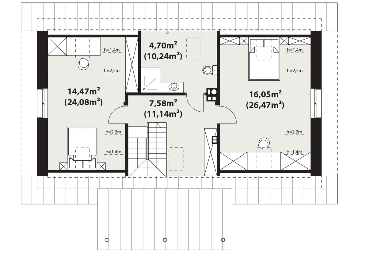 | Powierzchnia użytkowaDla domów parterowych: Suma powierzchni użytkowych wszystkich pomieszczeń bez garażu. Dla domów z poddaszem (dach spadzisty): Suma powierzchni użytkowych wszystkich pomieszczeń bez garażu i strychu. Na poddaszu, pod skosami dachu powierzchnię użytkową liczono wg zasady: - powyżej 2,2m wysokości pomieszczenia powierzchnia liczona w 100%, - pomiędzy 1,4m a 2,2m w 50%, - poniżej 1,4m powierzchnia nie jest brana pod uwagę. | 119.56 m² |